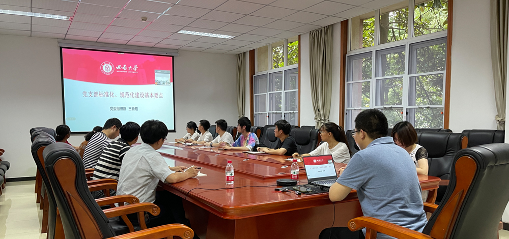 邀请学校党委组织部组织科科长王新皓为全体支部书记和支委作《党支部标准化、规范化建设基本要点》专题培训。培训会由党委书记赵智华主持。