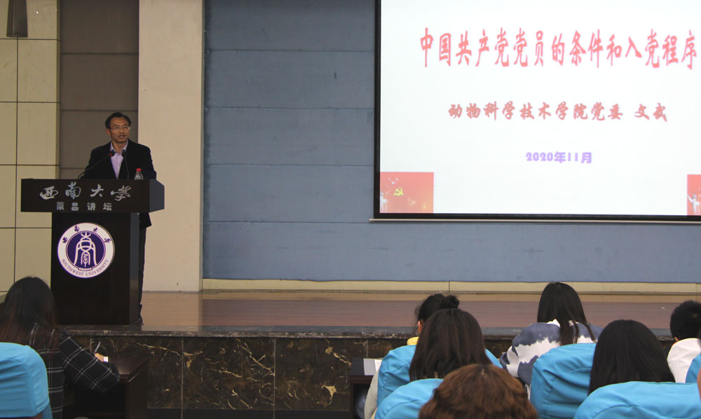 文武副书记围绕“中国共产党党员的条件和入党程序”主题,从壮大入党申请队伍、积极分子的教育与培养、发展对象的确定和培养考察、预备党员的接收与转正等方面对入党的流程进行了详细讲解。他指出:共产党员是具有共产主义觉悟的先锋战士,永远是劳动人民的普通一员,当代青年积极向党靠拢是坚定信仰和崇高追求,要本着全心全意为人民服务的宗旨,为共产主义奋斗终身。
