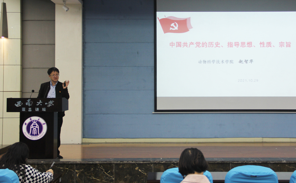开班典礼后,赵智华书记为荣昌校区学员主讲第一课,从党的百年发展历程讲授了《中国共产党的历史、指导思想、性质和宗旨》,强调入党积极分子要坚持学史明理、学史增信、学史崇德、学史力行,学习传承党在长期奋斗中铸就的伟大建党精神,深刻领会中国共产党成功推进革命、建设、改革的宝贵经验等内容。通过学习不断坚定理想信念,不断提高理论素养,明确党员基本权利和义务,端正入党动机,牢固树立远大的理想。