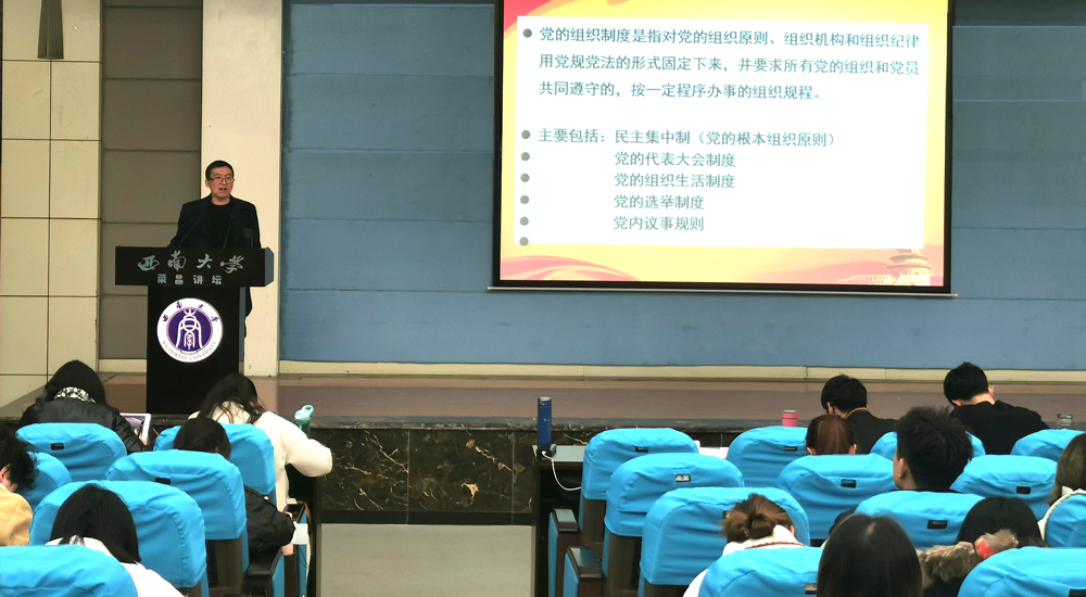 党委委员、副院长赵中权为荣昌校区学员讲授了《中国共产党的组织制度和纪律》。