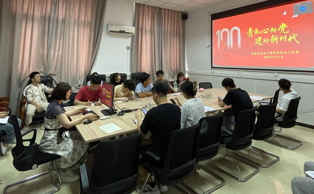 研究生二支部书记范成莉在37教118会议室讲“青春心向党,建功新时代”主题微党课,支部全体党员、积极分子以线下+线上的方式参加。