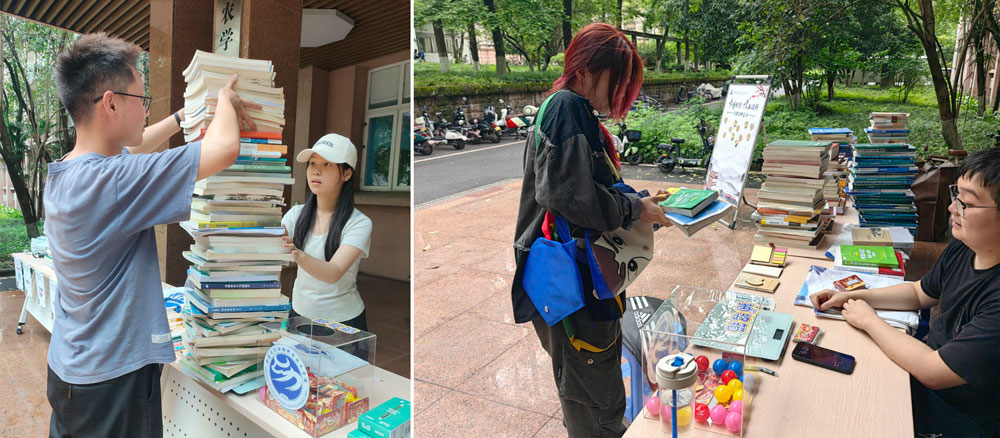 老师、学生免费发放,大家根据需求合理申请书籍,有序登记取用。活动中,大家积极参与,在传递书籍的过程中也让不同年级的同学共享书香,延续友爱,共燃思想之火。