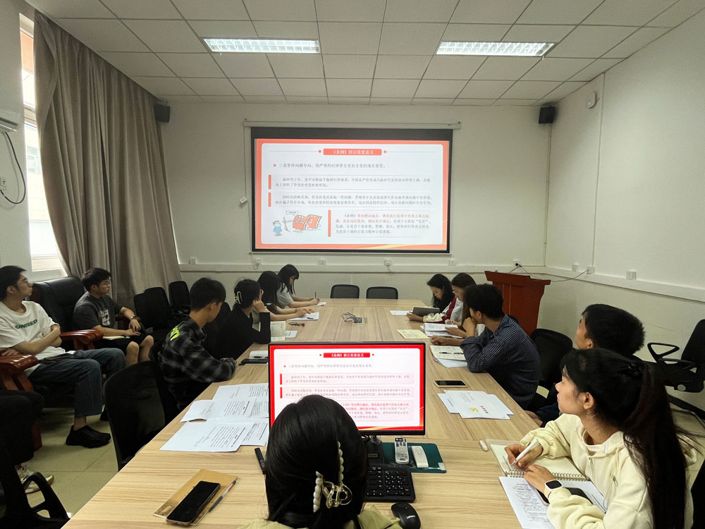 研究生第二党支部书记范成莉在北碚校区37教118会议室为全体党员和入党积极分子讲“学《中国共产党纪律处分条例》、明规矩、严自律、树形象、在深学细悟笃行中争做新时代合格党员”专题党课。