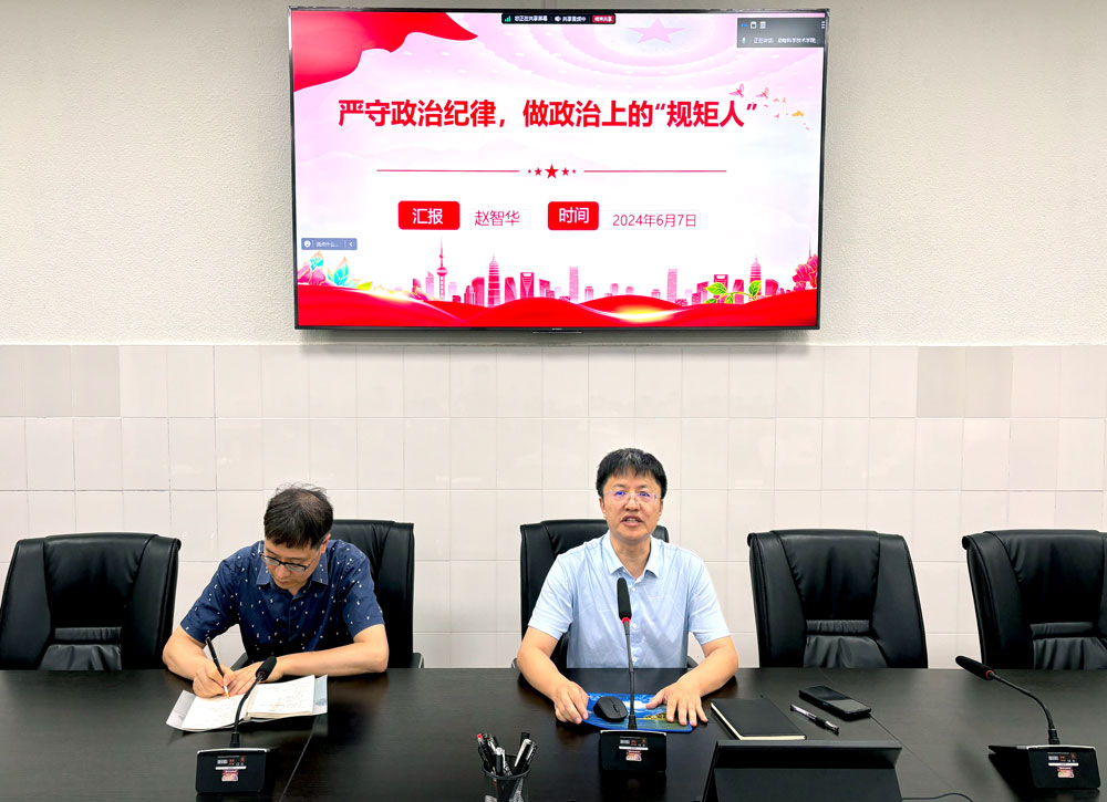党委书记赵智华6月7日为全院教职工讲授《严守政治纪律,做政治上的“规矩人”》党纪学习教育专题党课。