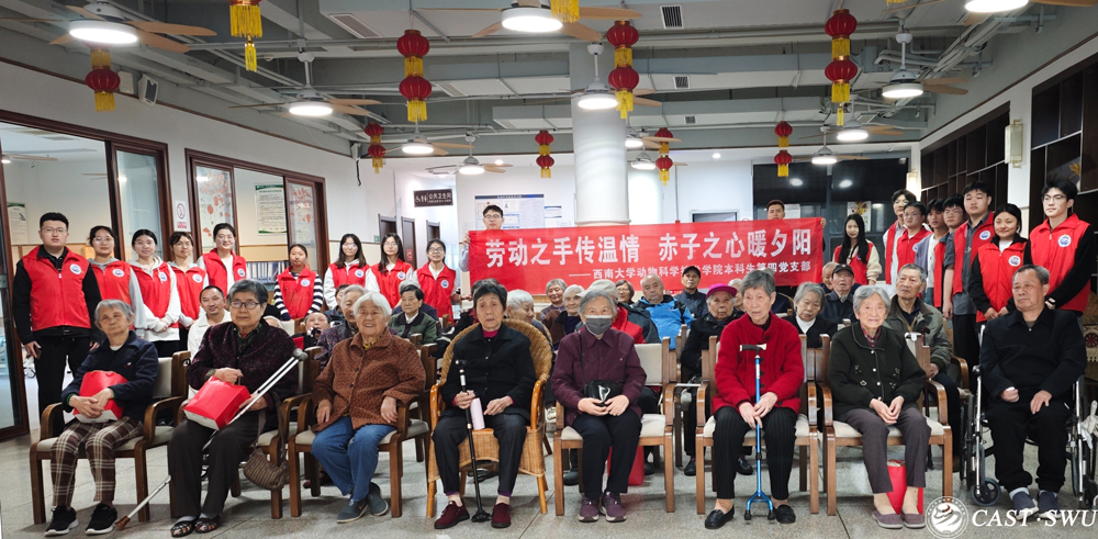 本科生第四党支部全体成员走进重庆市荣昌区康诺养老院,开展“劳动之手传温情 赤子之心暖夕阳”志愿服务活动。青年党员通过“卫生清洁+艺术疗愈+健康促进”三维一体服务模式,以实际行动践行“全心全意为人民服务”的宗旨,弘扬尊老敬老的传统美德,领悟孝老爱亲的时代内涵。