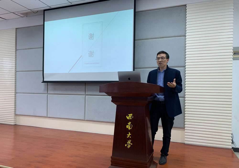 2017级水产养殖专业的黄嘉南为大家做题为“为这灰色的生活镀一镀金”分享。他讲述了自己前往英国卡迪夫大学、泰国孔敬大学的访学经历,分享了作为学生会主席提升统筹协调能力、语言表达能力的心得和创办西南大学就业创业协会、参加各种专业竞赛的体会。他生动形象地阐述了努力要找对方向,专业学习、工作生活都要认真对待的深刻道理。