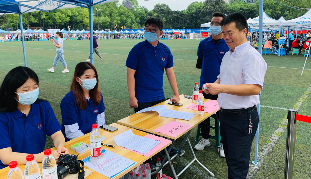 党政领导深入报到现场,走访慰问了2020级新生,与他们亲切交谈,并对迎新工作人员的工作给予充分肯定。