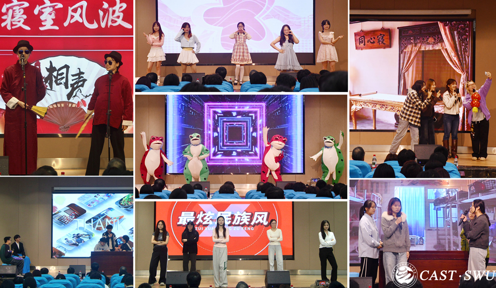 本届大学生寝室文化大赛以“‘寝’耀青春,‘宿’润芳华”为主题,有三十余间寝室报名参赛。经过前期初赛选拔,最终有10间寝室脱颖而出入围决赛。决赛现场,10间寝室的学子依据抽签顺序依次登台,围绕寝室成员风采、空间设计理念、特色寝室文化等内容展开详细介绍。各寝室成员还携手带来歌舞串烧、自创情景剧、主题朗诵等创意节目,充分展现了各寝室团队的凝聚力与青春活力。比赛期间,现场还设置两次有奖问答环节,观众积极举手参与,互动氛围热烈高涨,进一步点燃了现场气氛。