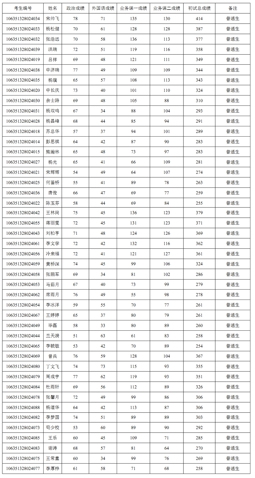 一、复试名单公示(含单科分数要求)