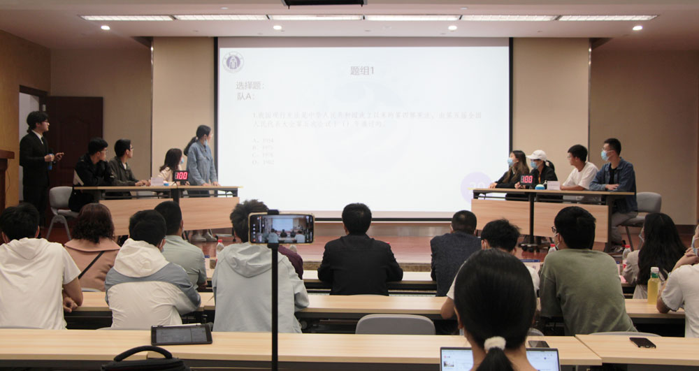 本次“学宪法,讲宪法”知识竞赛共有280余名学生报名参加,经过前期初赛笔试的激烈角逐,共有10个参赛队的40名同学脱颖而出,入围决赛现场大比拼。决赛分为必答题、抢答题和风险题等三个环节,10个参赛队抽签分为5个比赛小组,分组依次上台进行角逐。比赛现场,参赛选手熟悉宪法知识,对答如流,赢得观众阵阵掌声。比赛结束后,文武进行了点评讲话,强调宪法是国家的根本大法、拥有最高的法律效力、是治国安邦的总章程,对同学们积极学习宪法知识、熟练掌握宪法知识给予高度评价,希望全体同学切实提高法律意识,增强法治观念,做一个知法、守法的新时代优秀大学生。