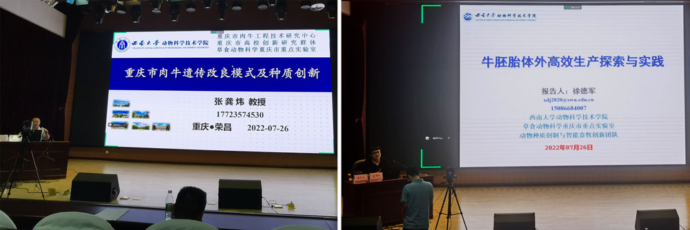 张龚炜教授和徐德军博士分别作了《重庆市肉牛遗传改良模式与种质创新》和《牛胚胎体外高效生产探索与实践》的学术报告。