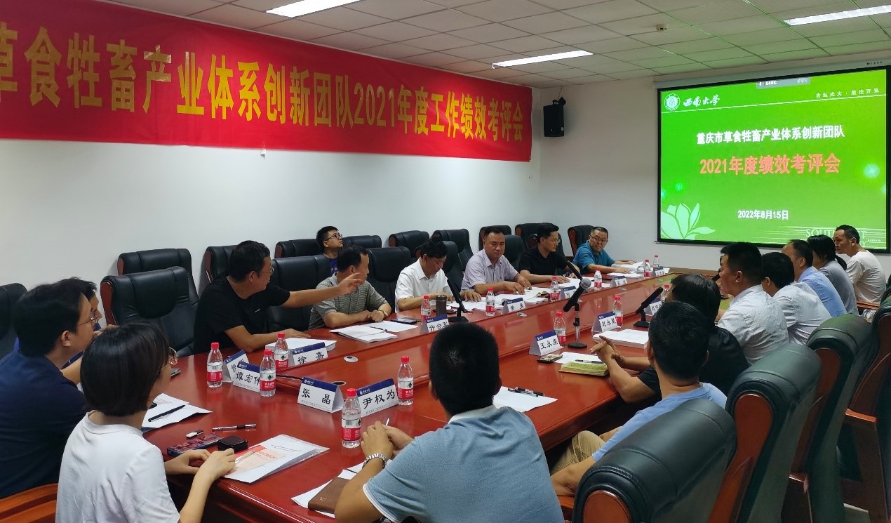 为考评重庆市草食牲畜产业体系创新团队2021年工作,2022年8月14-15日,重庆市农业农村委组织专家对产业体系创新团队2021年度工作进行工作绩效考评,市农业农村委相关处室领导、考评组领导和专家、体系首席专家、各功能研究室岗位专家、各综合试验站站长、首席办公室成员参加了会议。会议在澳门六合彩最快开奖