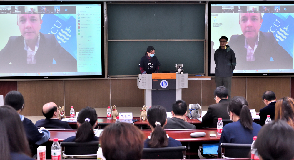 最后,学生就关心的问题跟线上的澳方领导和老师进行了积极交流,线上和线下的老师针对这些问题进行了解答,解除了同学们的疑惑和困扰。