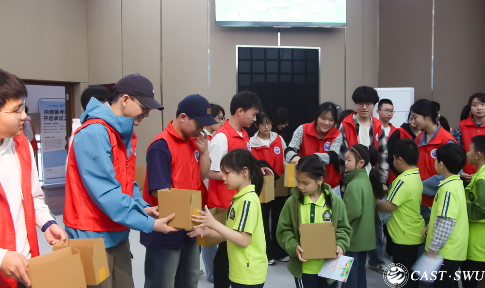 仪式结束后,大学生志愿者杨滨旭同学为小学生们做了鸡苗日常饲养知识的专题培训,通过图片、视频等形式介绍了鸡苗在不同生长阶段的环境要求、疾病预防以及饲喂要点等知识,使小学生们能够详细了解鸡苗饲养的相关事项。现场,大学生志愿者们还为小学生有序分发了鸡苗,并通过“大手牵小手”结对的形式指导小学生有效开展鸡苗饲养活动。