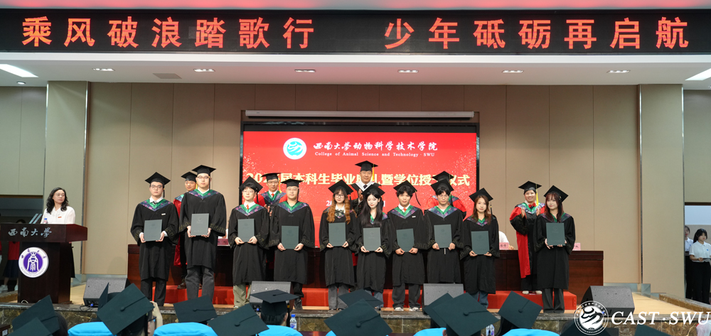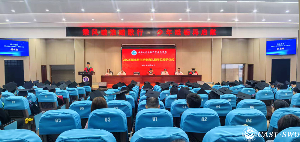 乘风破浪踏歌行,少年砥砺再启航。2025届本科生毕业典礼暨学位授予仪式在洪亮的西南大学校歌声中落下帷幕。“六有”新动科学子将秉承“含弘光大,继往开来”校训,践行“崇德、笃学、求是、创新”院训,胸怀强农兴农之志,勇攀科技高峰,在为国尽责、为民服务中实现个人价值、展现人生风采。