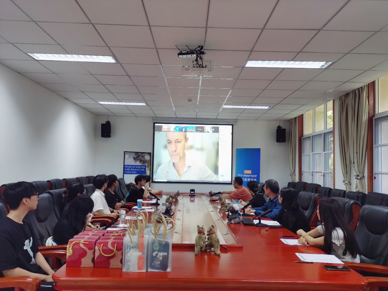 院长Ron White教授在讲话中祝贺即将到访的留学生,他介绍了JCU的历史、地理、文化和教育特色,表示JCU将为同学们提供最优质的服务和支持。鼓励同学们勇敢地追求自己的梦想,充分利用JCU丰富的资源和设施,开拓自己的视野和能力。JCU 项目协调专员KyallZenger教授为学生和家长展示了专业设置、课程安排、注册选课、学业支持、住宿接机等事宜,并详细解答了同学们关心的问题,给出了一些实用的建议和提示,同时还分享了一些成功留学的经验和案例,帮助同学们更好地规划自己的留学之路。AEMG相关老师针对学生出入境、银行支付、海外安全等注意事项进行了讲解,强调了遵守当地法律法规、保护个人财产安全等方面的内容,提醒同学们及时与家长和老师保持联系,及时反馈自己的情况和需求。