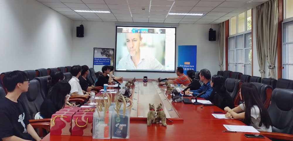 院长Ron White教授在讲话中祝贺即将到访的留学生,他介绍了JCU的历史、地理、文化和教育特色,表示JCU将为同学们提供最优质的服务和支持。鼓励同学们勇敢地追求自己的梦想,充分利用JCU丰富的资源和设施,开拓自己的视野和能力。JCU 项目协调专员KyallZenger教授为学生和家长展示了专业设置、课程安排、注册选课、学业支持、住宿接机等事宜,并详细解答了同学们关心的问题,给出了一些实用的建议和提示,同时还分享了一些成功留学的经验和案例,帮助同学们更好地规划自己的留学之路。AEMG相关老师针对学生出入境、银行支付、海外安全等注意事项进行了讲解,强调了遵守当地法律法规、保护个人财产安全等方面的内容,提醒同学们及时与家长和老师保持联系,及时反馈自己的情况和需求。
