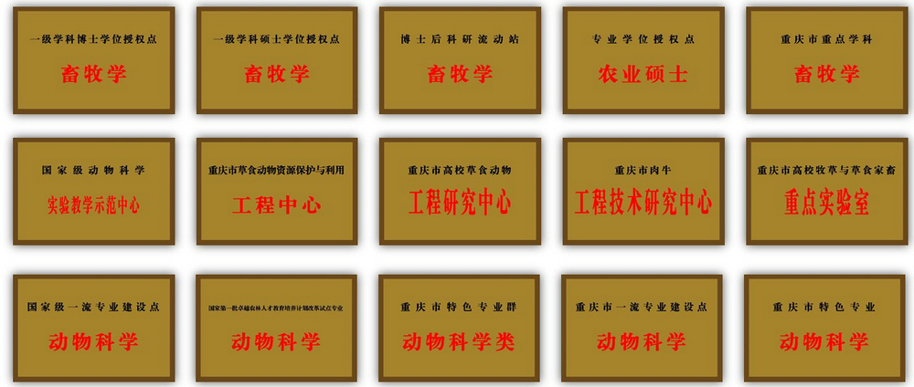 2014年 国家卓越农林人才教育培养计划改革试点专业;重庆市特色学科专业群